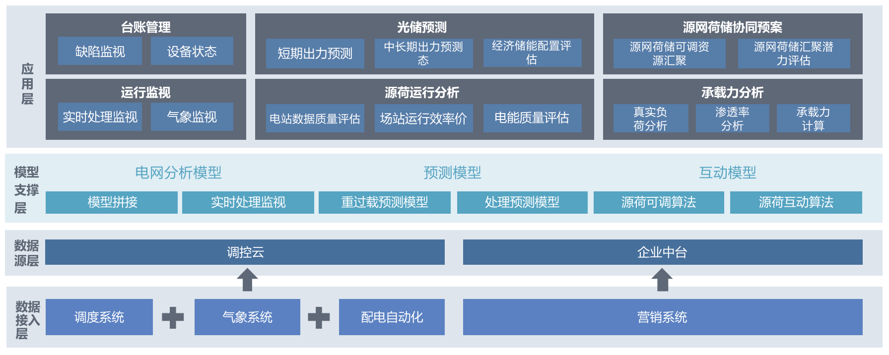 重點解決分布式能源多源數(shù)據(jù)融合和分析力度有限的業(yè)務(wù)痛點,以新能源采集為數(shù)據(jù)基礎(chǔ),充分考慮分布式能源接入配網(wǎng)影響因素,構(gòu)建分布式能源接入電網(wǎng)引導(dǎo)合理布局、裝機規(guī)模規(guī)劃與協(xié)同應(yīng)用分析應(yīng)用規(guī)劃,實現(xiàn)新型電力系統(tǒng)下配網(wǎng)供電能力輔助應(yīng)用、分布式能源全景可視化、承載力分析、風(fēng)險識別、光伏出力預(yù)測、經(jīng)濟儲能評估、消納能力評估、源網(wǎng)荷儲協(xié)同互動等應(yīng)用場景。